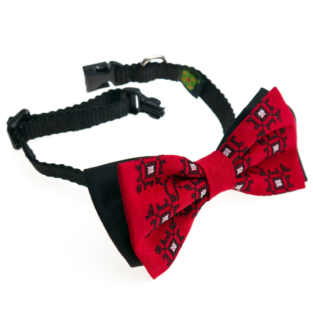 Designed with love and crafted with care, this collar is made especially for your four-legged friend. Featuring a charming red embroidered bowtie made from premium suiting fabric, this stylish accessory turns every walk into a special occasion. The sturdy base ensures your pet stays comfortable and secure.