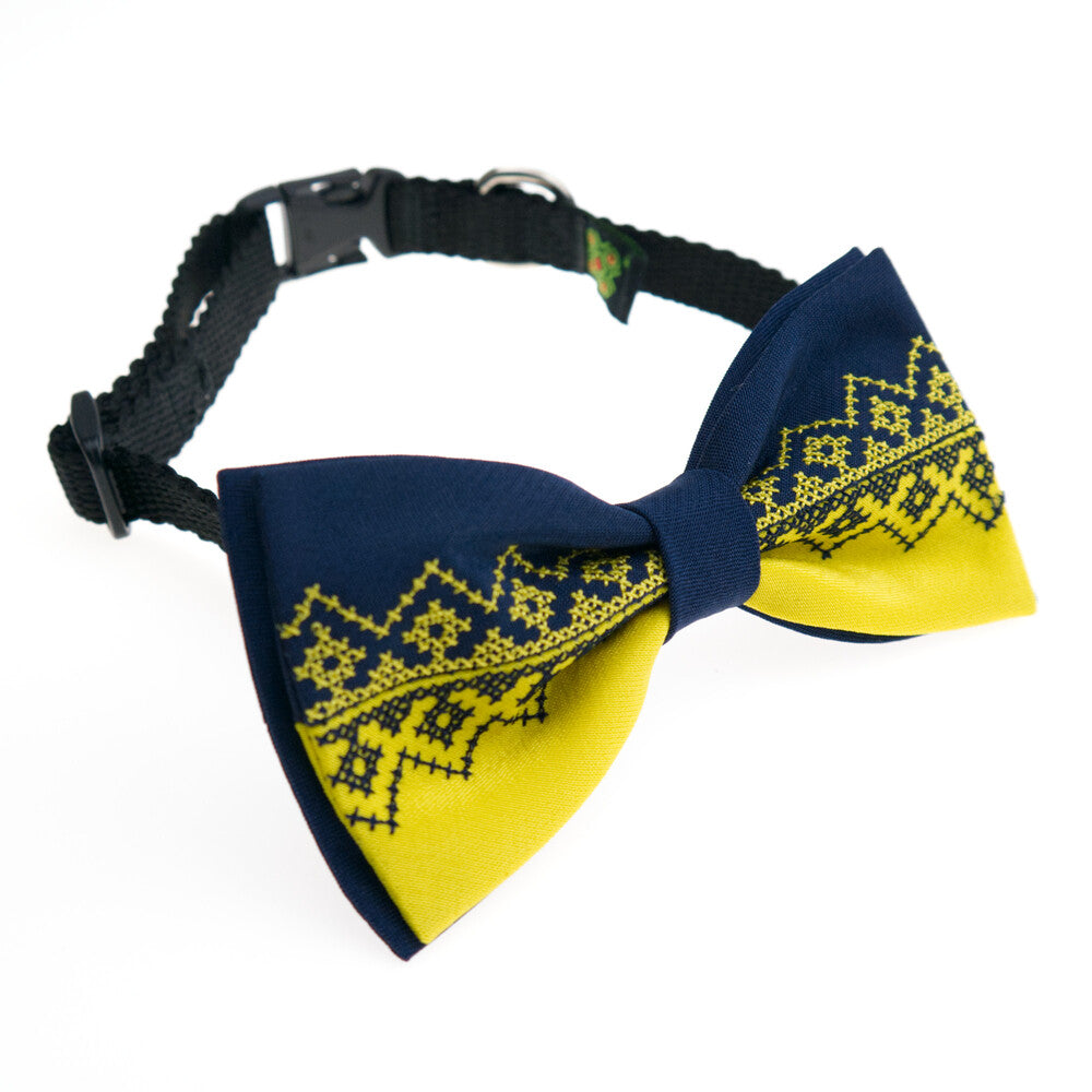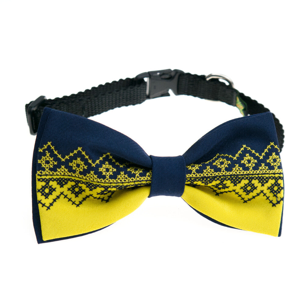 Designed with love and crafted with care, this collar is made especially for your four-legged friend. Featuring a charming blue and yellow embroidered bowtie made from premium suiting fabric, this stylish accessory turns every walk into a special occasion. The sturdy base ensures your pet stays comfortable and secure.