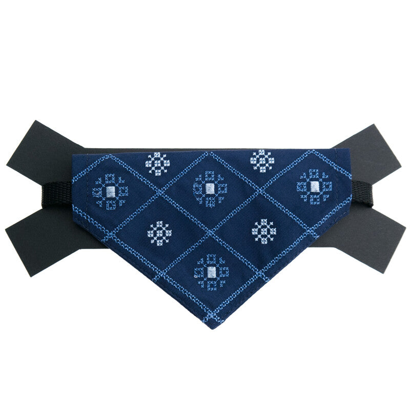 Designed with love and crafted with care, this collar is made especially for your four-legged friend. Featuring a charming navy embroidered bandana made from premium suiting fabric, this stylish accessory turns every walk into a special occasion. The sturdy base ensures your pet stays comfortable and secure.
