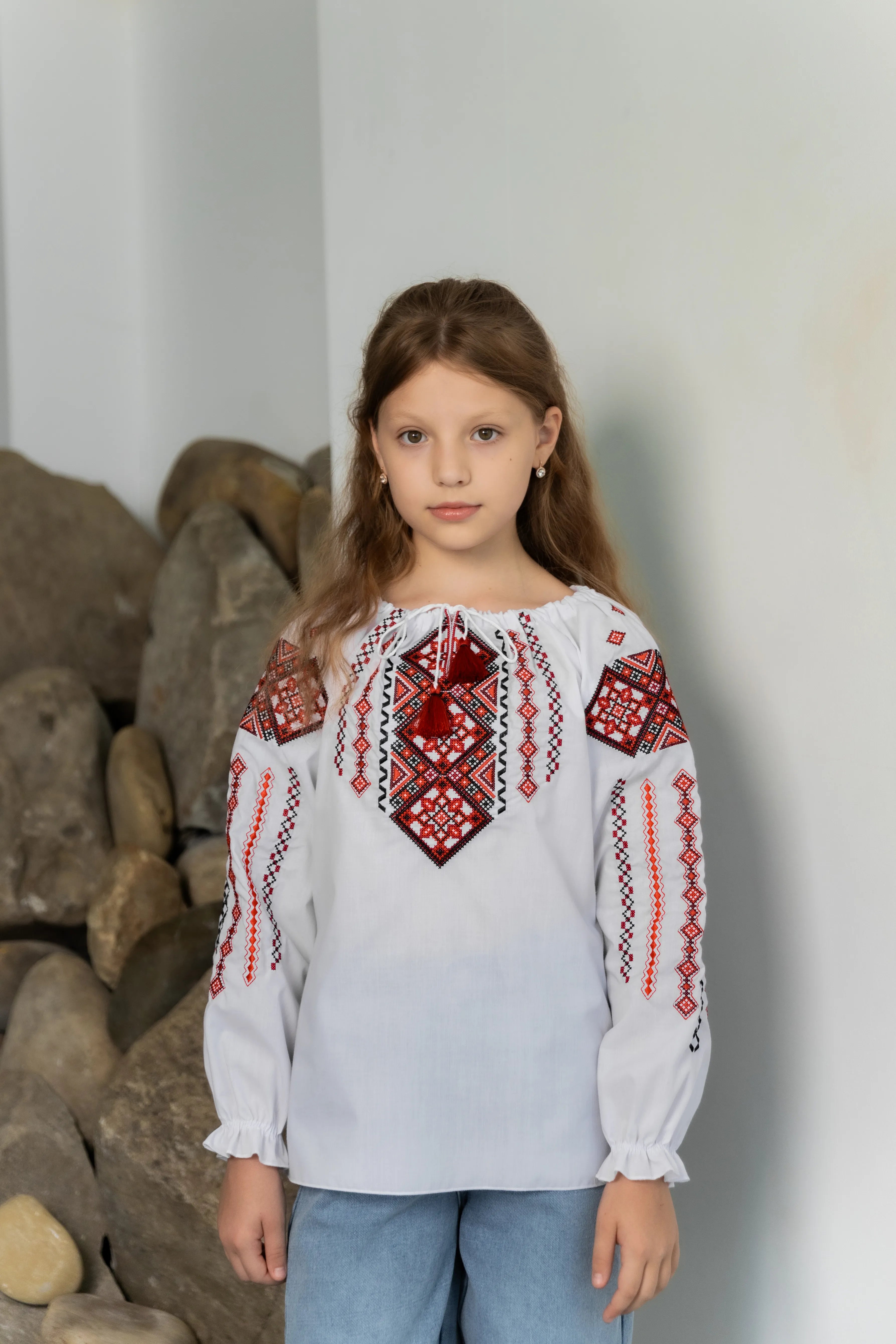 Girl’s Blouse Odarka features delicate Ukrainian embroidery and a clean, classic silhouette. Made from a durable cotton/polyester blend, it is comfortable, easy to care for, and designed for active everyday wear.