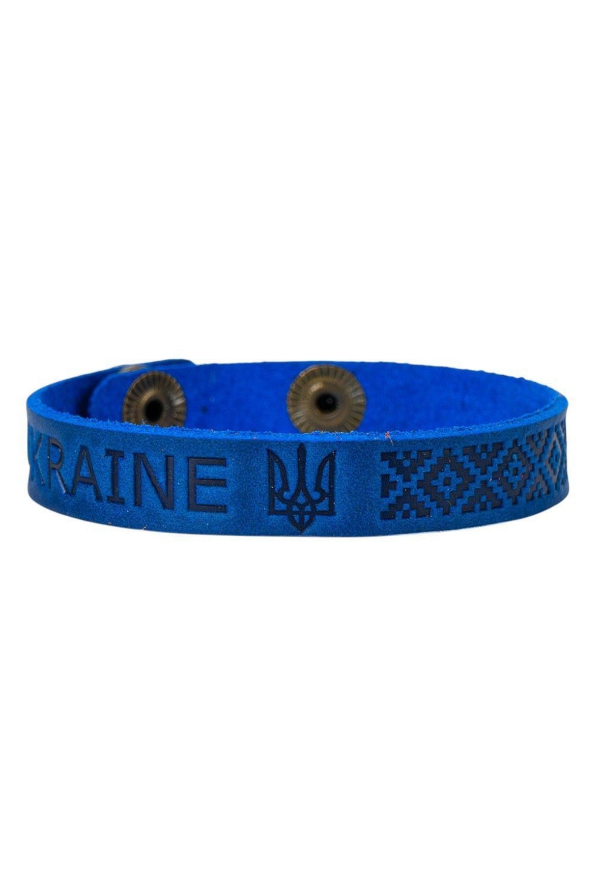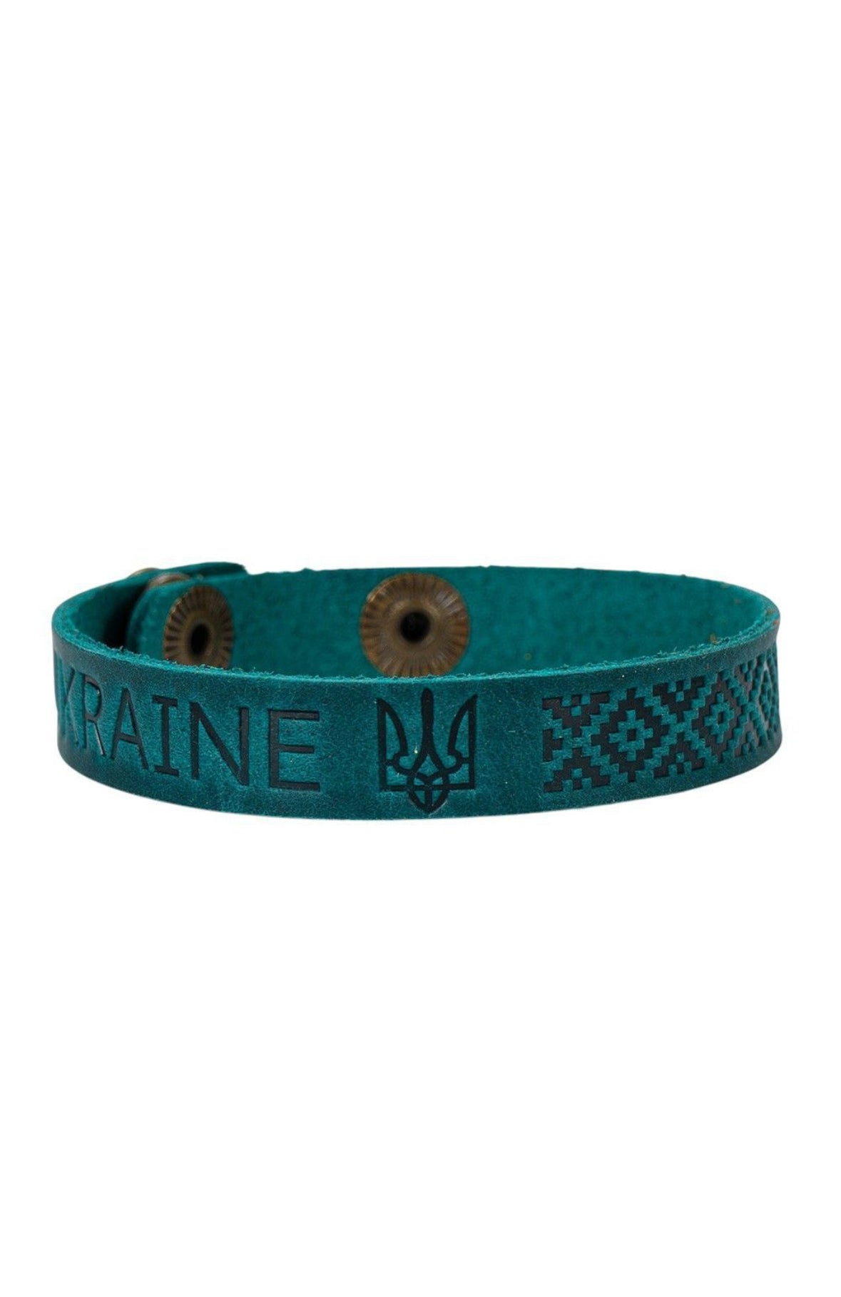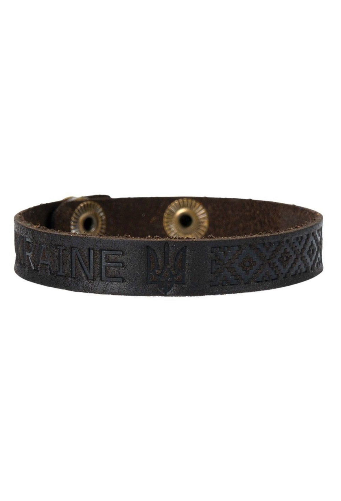 Brown or tan leather bracelet with “Ukraine”, tryzub and embroidery pressed into design